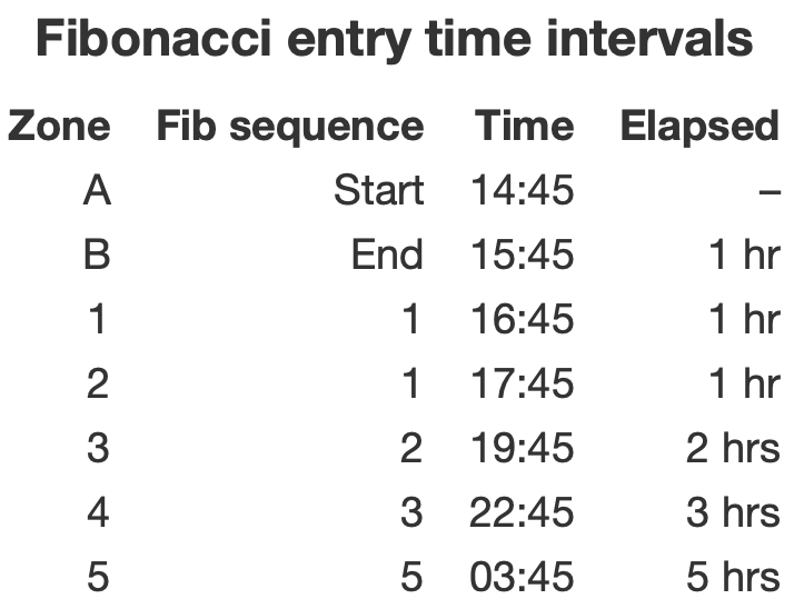 A点和B点是图表上的两个参考点,假设它们相距1小时。网格交易之间的时间间隔是前两次的总和。我们从1小时(1小时+0小时)开始。接下来也是一个小时。区域3是2小时(1小时+1小时),区域4是3小时(1小时+2小时),依此类推。